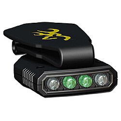 Convenient LED cap light Durable polymer housing Two white and one green LEDWhite lights 19 lumens; green light 8 lumens Runs for up to 10 hours on white LEDs; 48 hours on green LEDWater-resistant push button switch Tucks under cap brim, pocket, or pack strap Runs on two 2032 batteries (included)Newly improved with 25% brighter lights, enjoy the dependable performance of LED lighting from a convenient and handy source with the BrowningA Night Seeker 2 Cap Light. This 27 lumen LED light is housed in a tough black polymer body with an easy-to-use clip that slides easily over a hat brim and pivots to provide light wherever you are looking, making it a great light for hunting, night fishing, working on the truck, or whatever you need a hands-free light for. Light has two white LEDs for long lasting all-purpose light and one green LED bulb for improved night vision. Runs on two 2032 batteries (included). Light runs up to 10 hours on the white LEDs only and 48 hours on the green LED only. Effective beam distance: 20 meters. Matte black finish with Browning logo on clip. Water-resistant push button switch. Also attaches easily to pack strap or pocket. Manufacturer model #: 3715081.Uses ANSI industry standards to measure the performance of its flashlights. Browning is proud to endorse and participate in these standards, along with many other top flashlight manufacturers, for measuring lumens, run time, and beam distance.